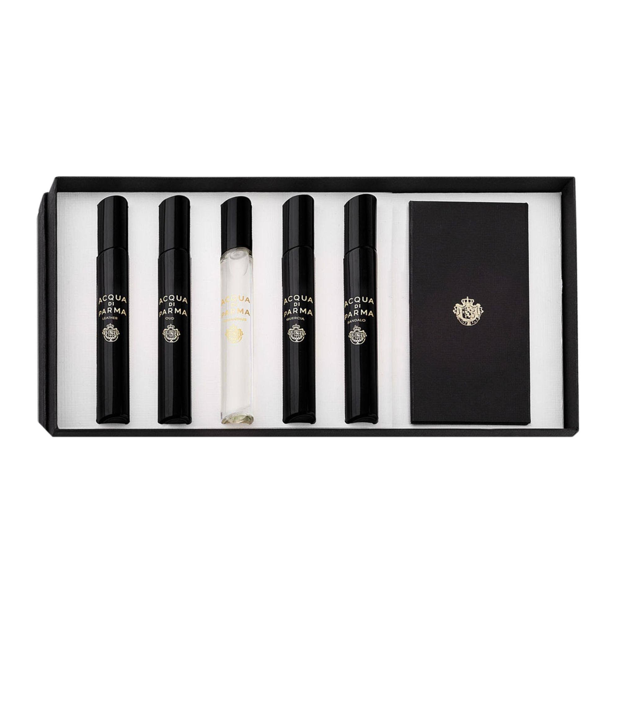Set Acqua di Parma: Signatures Of The Sun – Leather, Eau De Parfum, For Men, 7 ml + Signatures Of The Sun – Oud, Eau De Parfum, For Men, 7 ml + Signatures Of The Sun – Osmanthus, Eau De Parfum, For Men, 7 ml + Signatures Of The Sun – Quercia, Eau De Parfum, For Men, 7 ml + Signatures Of The Sun – Sandalo, Eau De Parfum, For Men, 7 ml